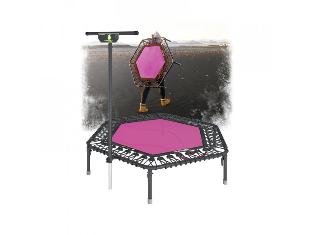 Na trampolíně může skákat celá rodina, její maximální nosnost je 110 kg. Rám trampolíny je o 16cm menší než Jumping® trampolína STANDARD, FLEXI a PLUS. Důvod je jasný. Snažili jsme se dosáhnout maximálního pohodlí při přepravě trampolín, ale zároveň zachovat princip Jumpingu. Rám trampolíny je rozdělen na 6 samostatných částí. Součástí balení je 14 spojek včetně šroubů. Rám trampolíny se poskládá do sebe přes tyto spojky a PEVNĚ se dotáhne imbusovým klíčem. Nohy trampolíny se vsunou do předem připravených spojek a dotáhnou se pomocí excentrického šroubu. Stejným systémem nastavíte i výšku opěrných madel dle své potřeby. Jednotlivé nohy jsou zakončené speciálním gumovým nástavcem, který chrání podlahy všech druhů před poničením a zároveň před nevzhlednými šmouhami.