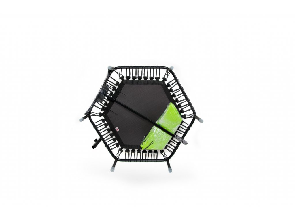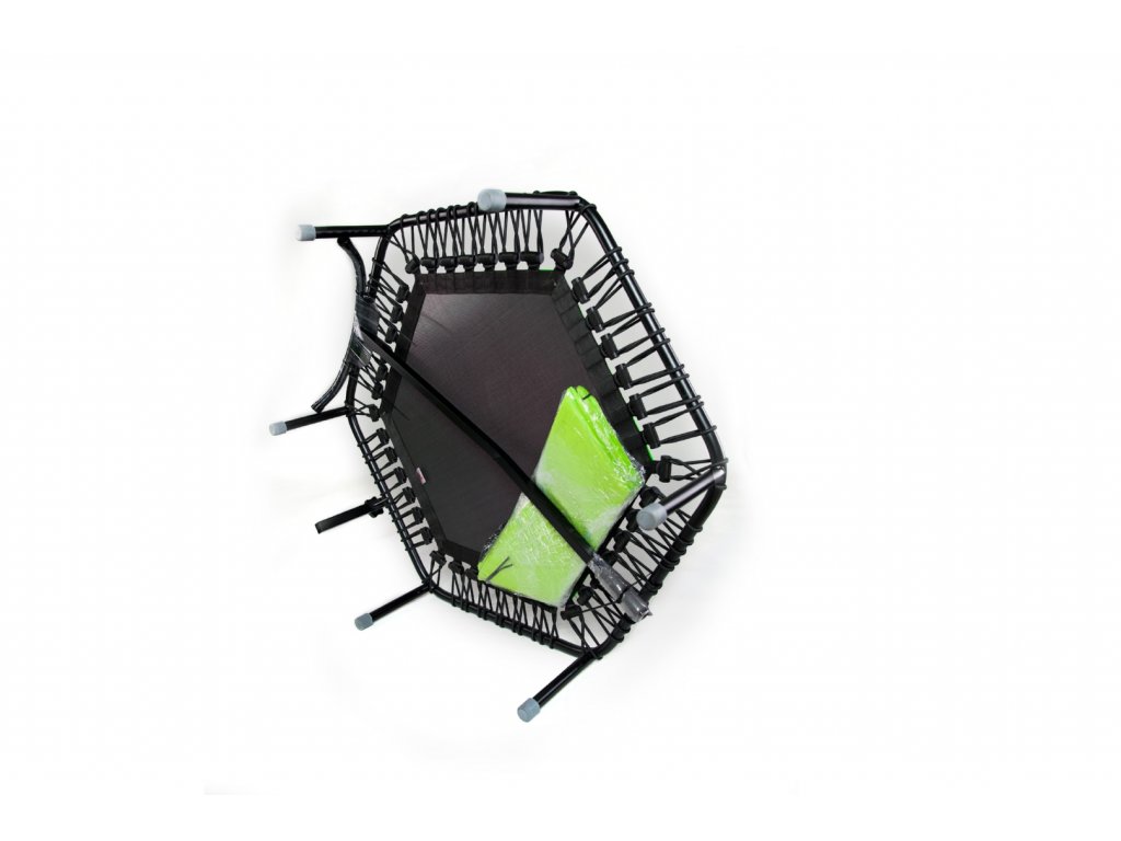 Rám trampolíny: Konstrukce této trampolíny je vyrobena z materiálu nejvyšší kvality, a to ocelového kulatého profilu, jehož 2 mm tloušťka stěny zajišťuje vysokou pevnost a tuhost. Součástí konstrukce je také 6 pevných nohou, které jsou zakončené speciálním gumovým nástavcem. Tento nástavec nezanechává šmouhy a chrání před poničením všech druhů povrchů. Nohy trampolíny jsou vysoké 28,5 cm. Hmotnost trampolíny nepřesáhne 10 kg.